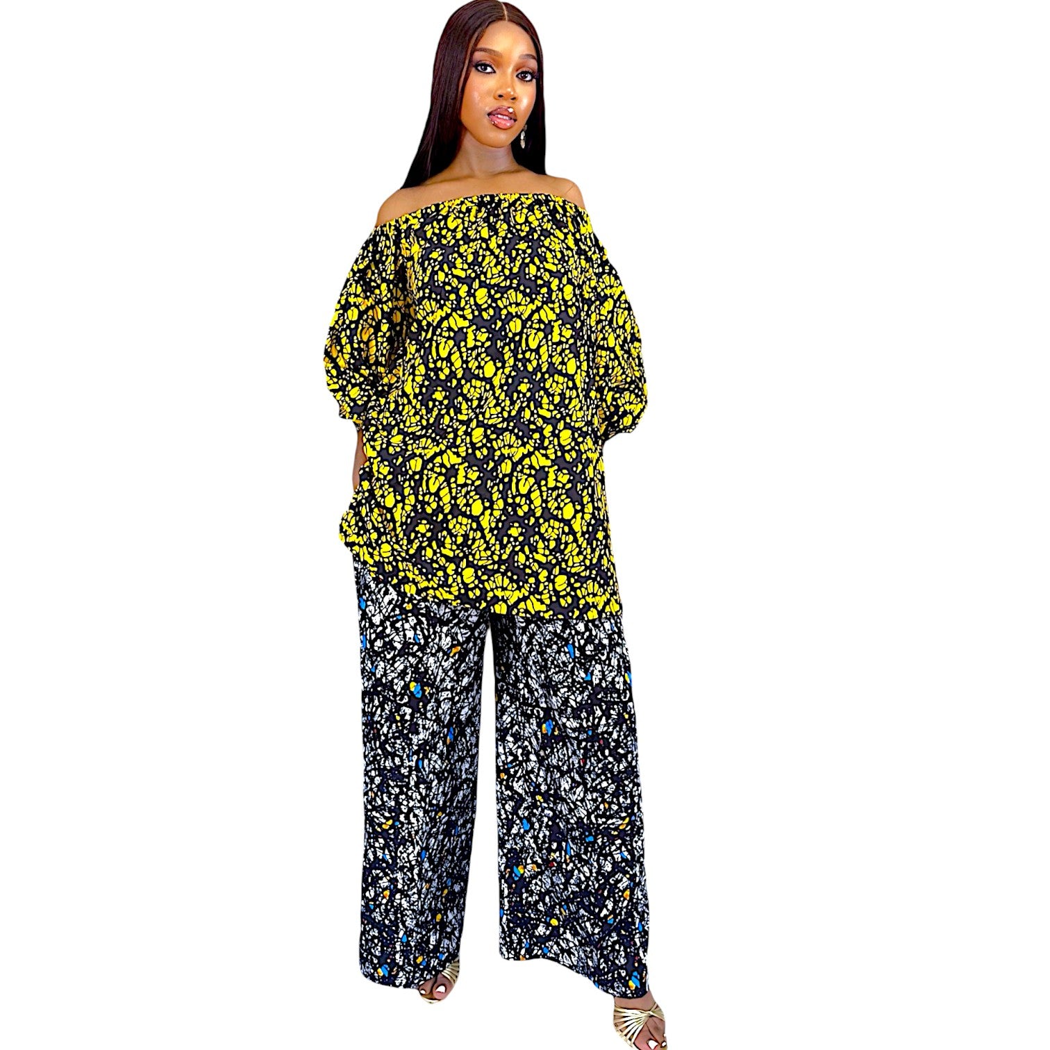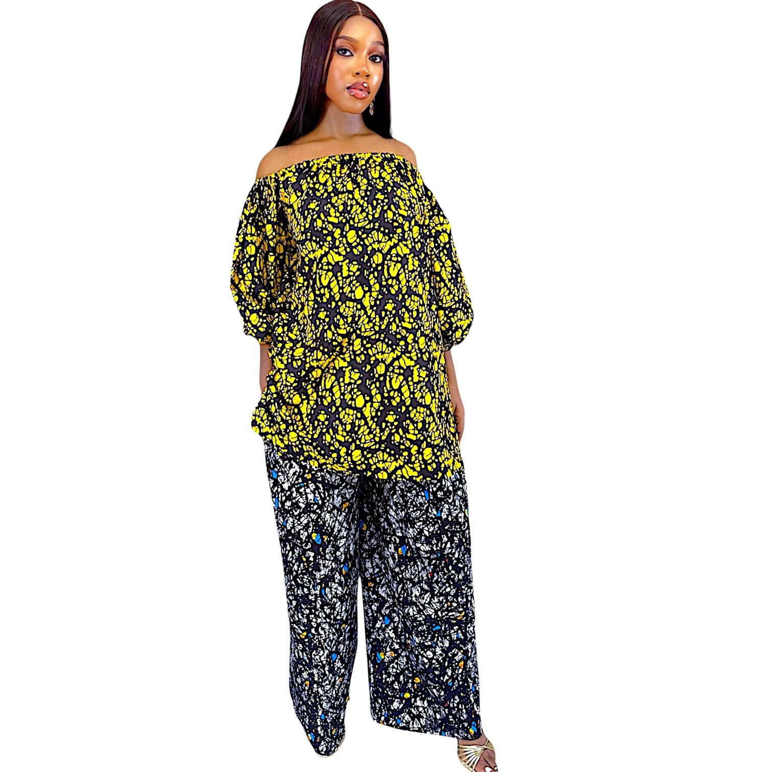 Àṣà Ankara Off-Shoulder Top And Wide Leg Pants Set
