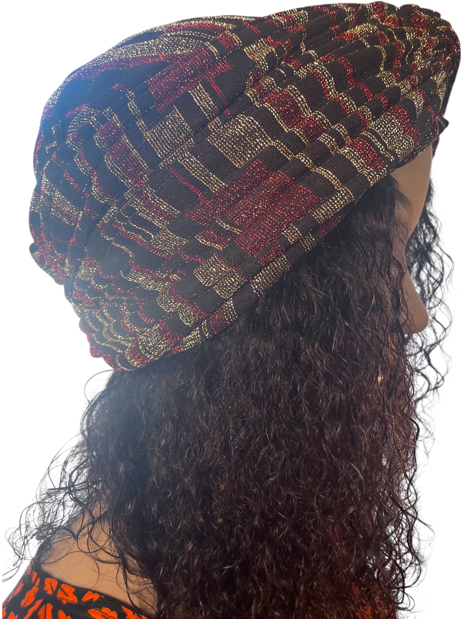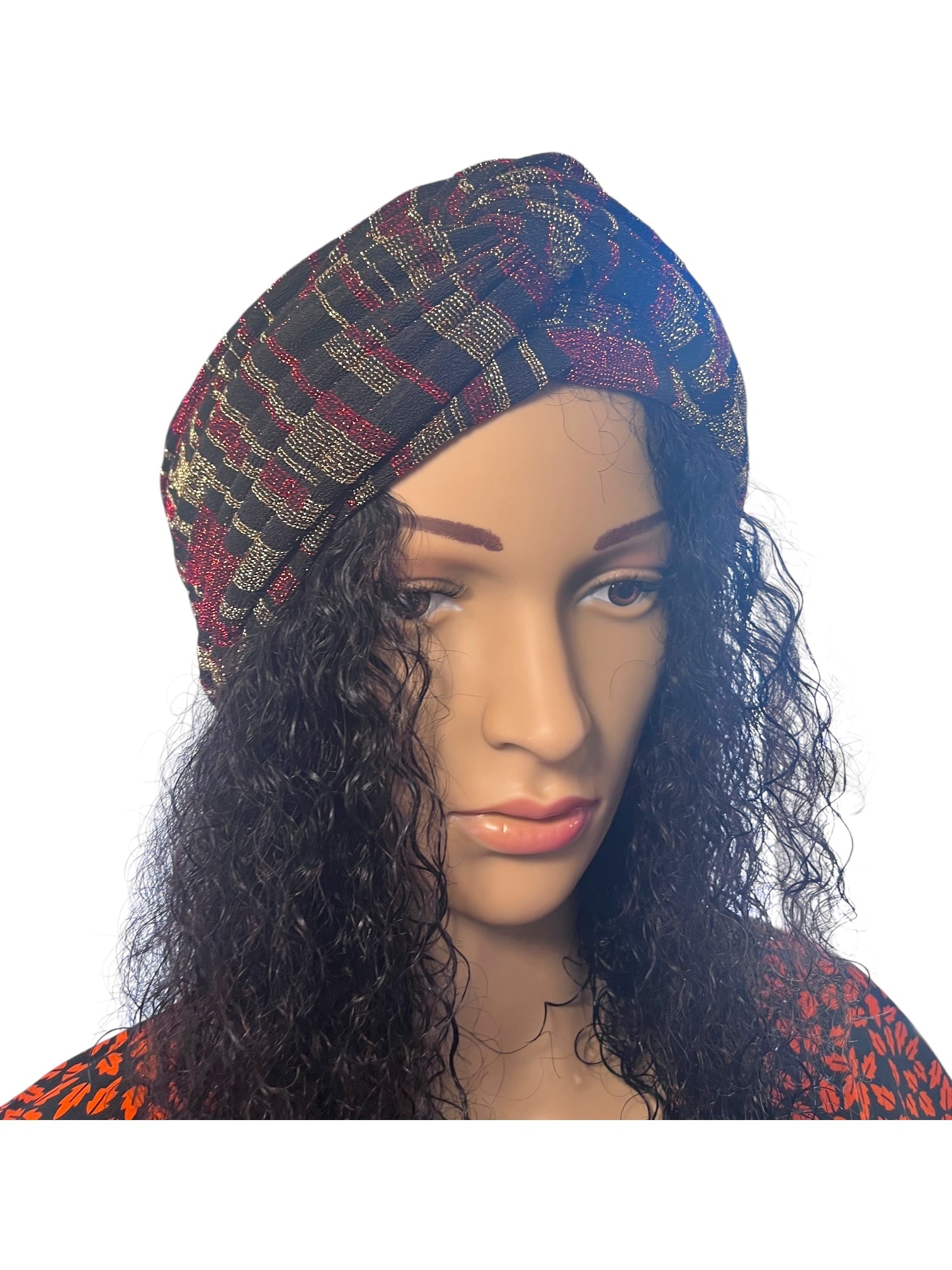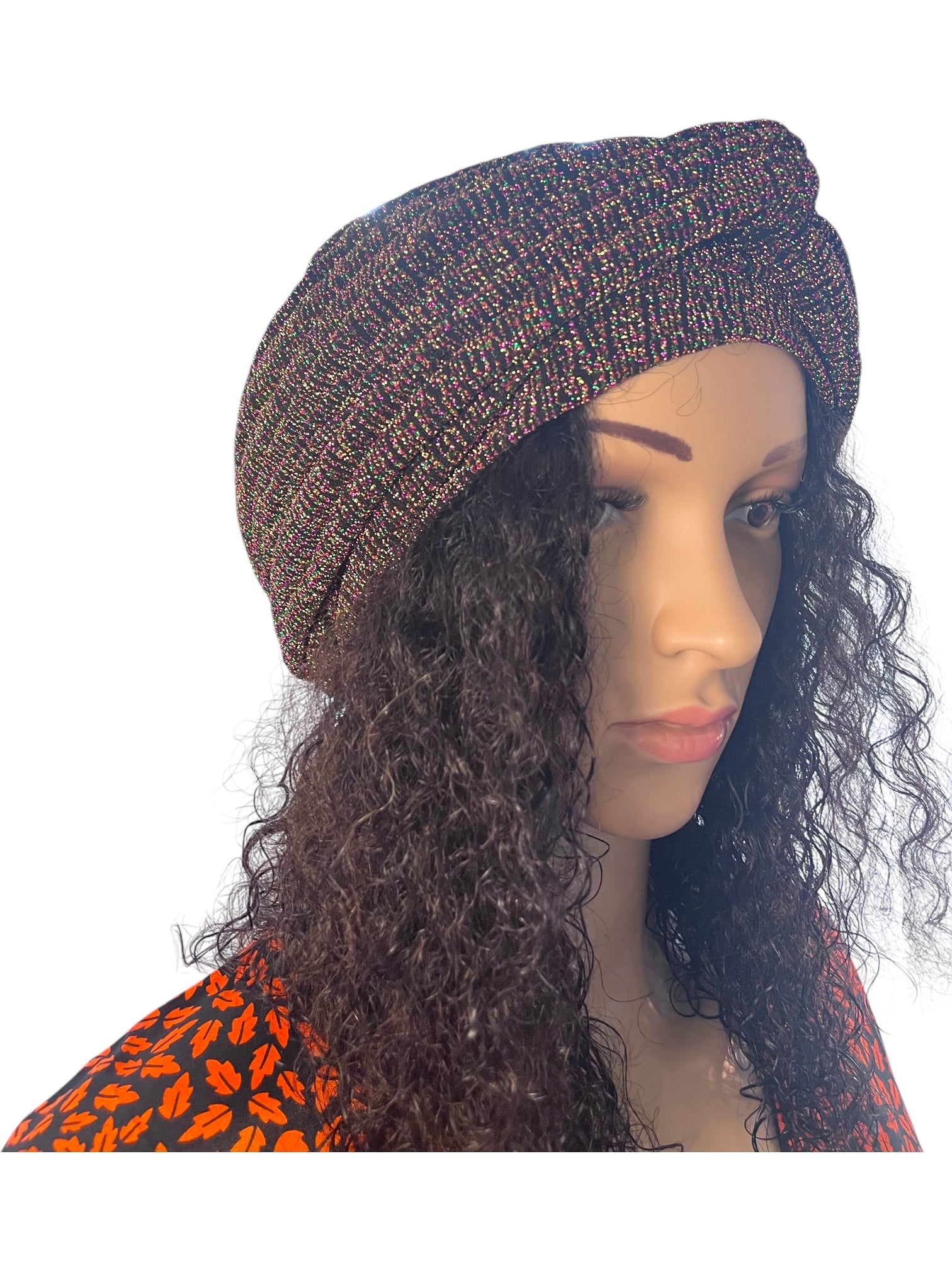 This vibrant turban combines colorful patterns and luxurious materials to create a stunning accessory for every fashionista.