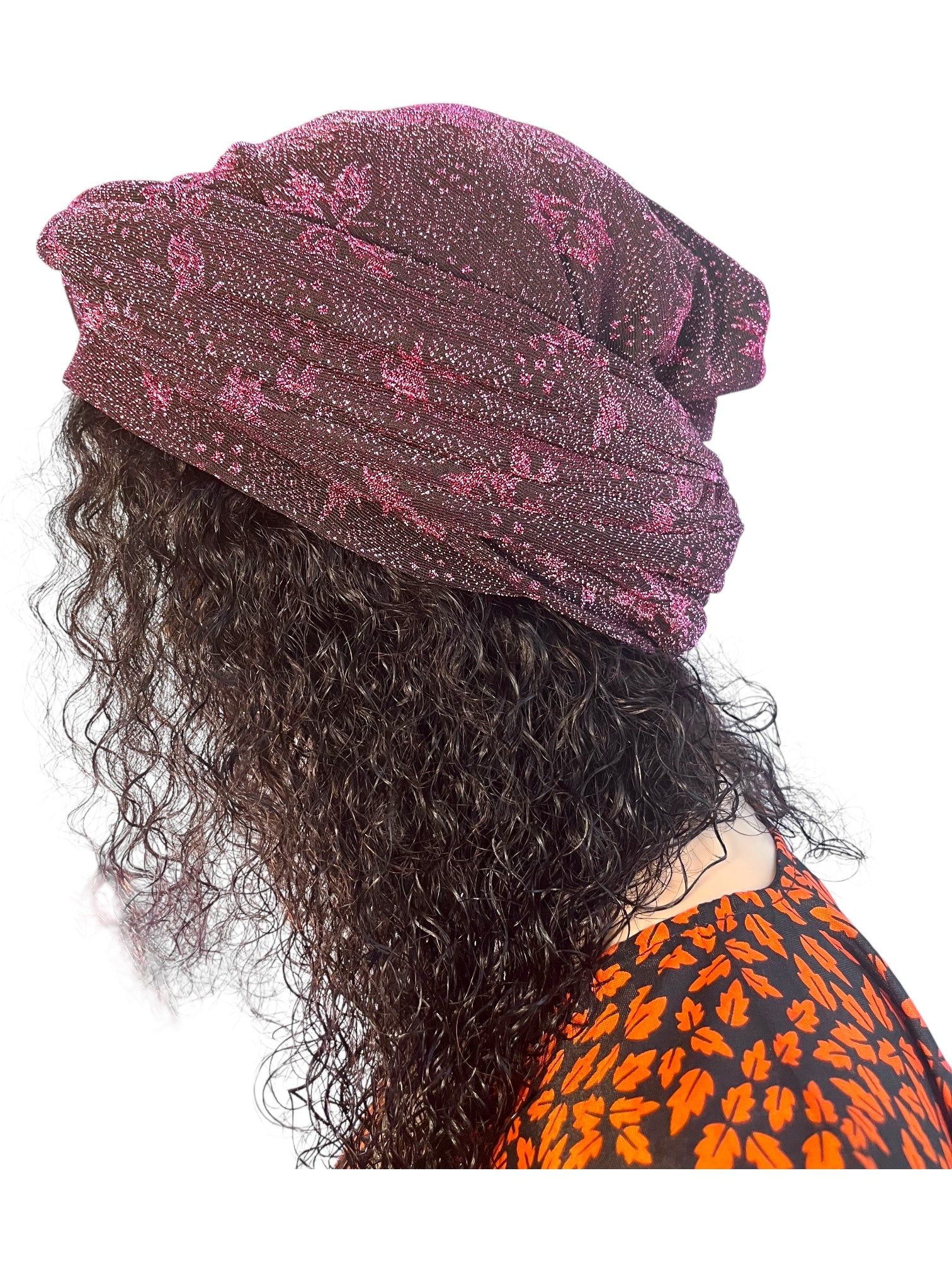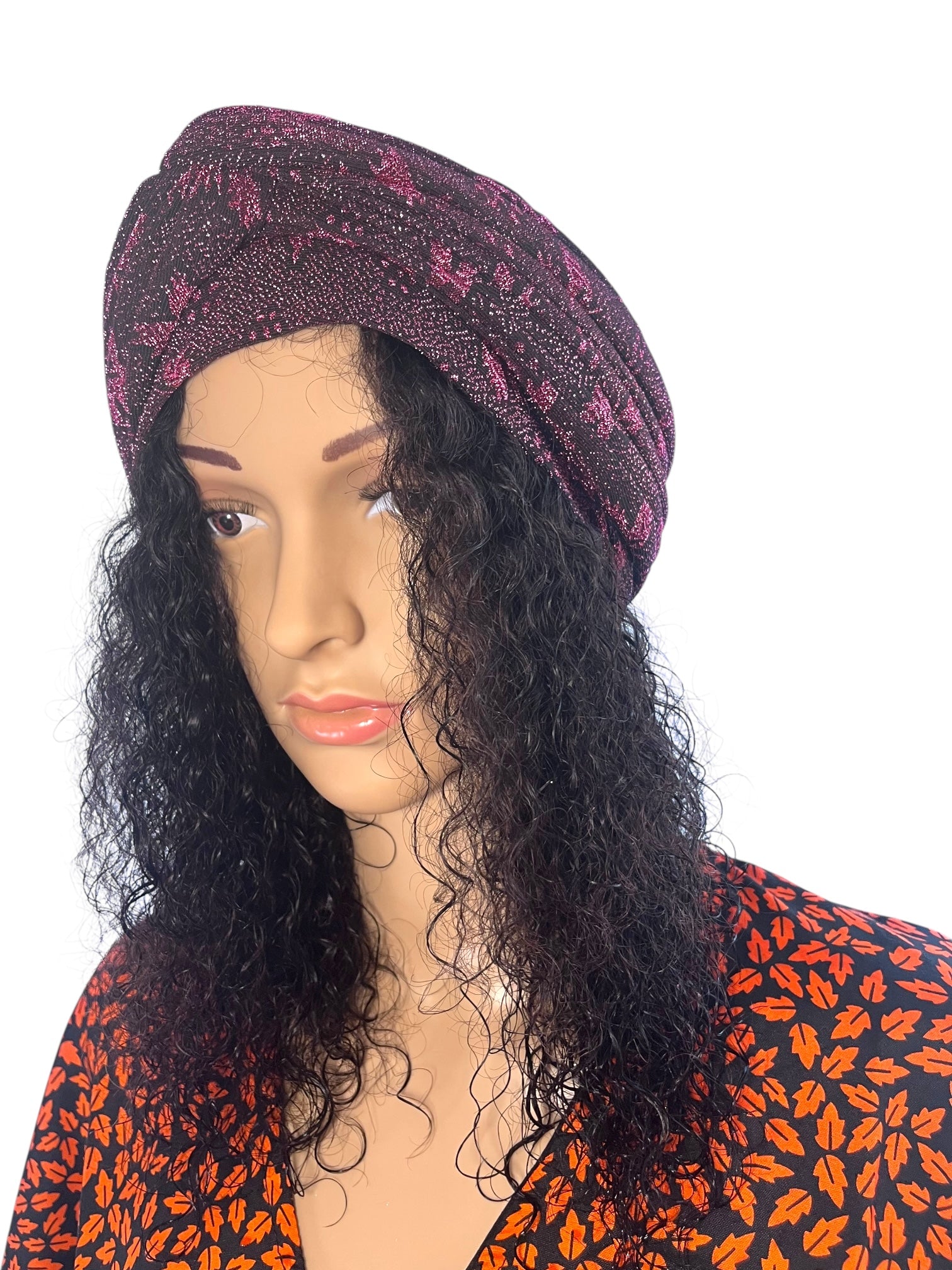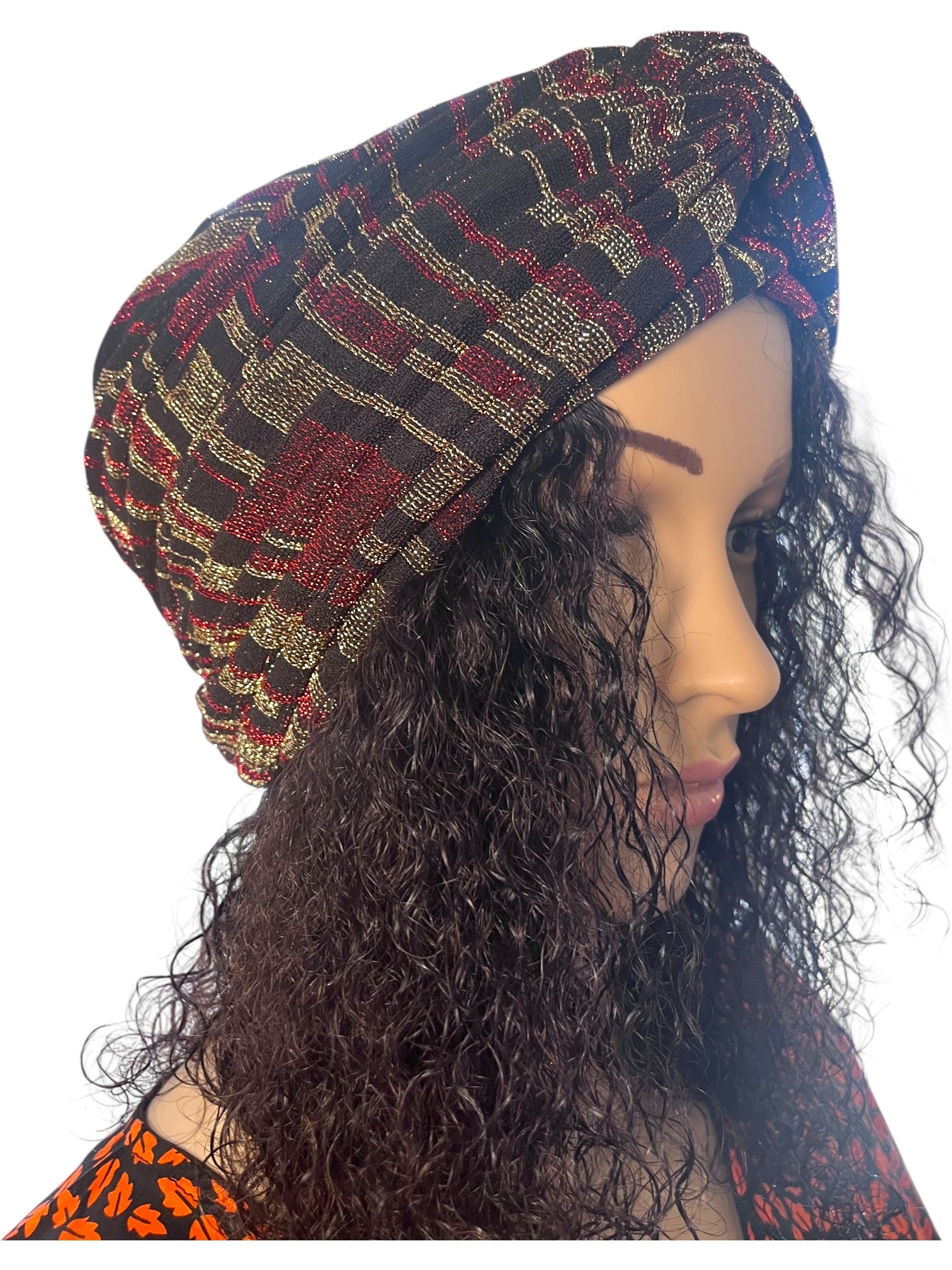 This vibrant turban combines colorful patterns and luxurious materials to create a stunning accessory for every fashionista.