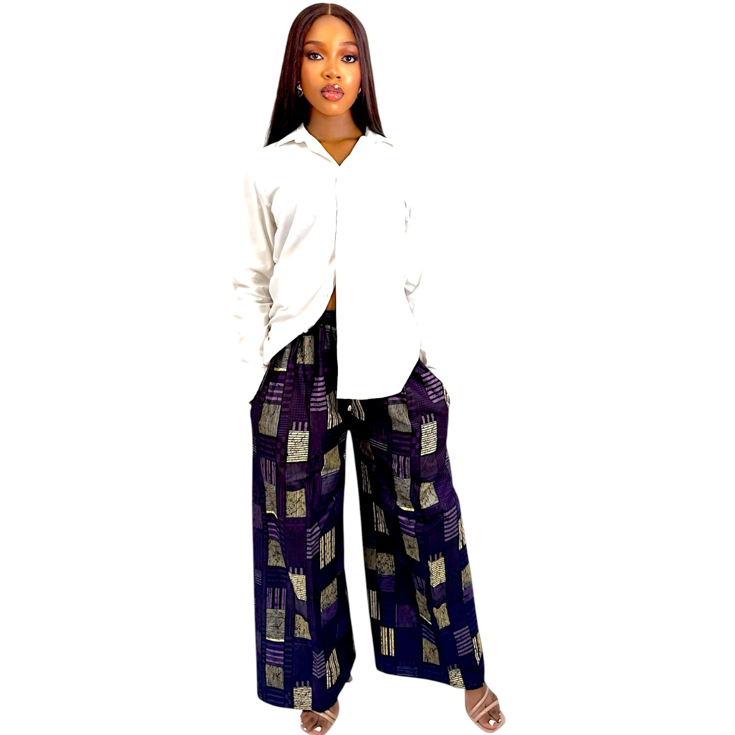 These pants are a perfect blend of comfort and style, making them ideal for any occasion. The wide leg design creates a flattering silhouette, while the Ankara print adds a touch of African charm.
