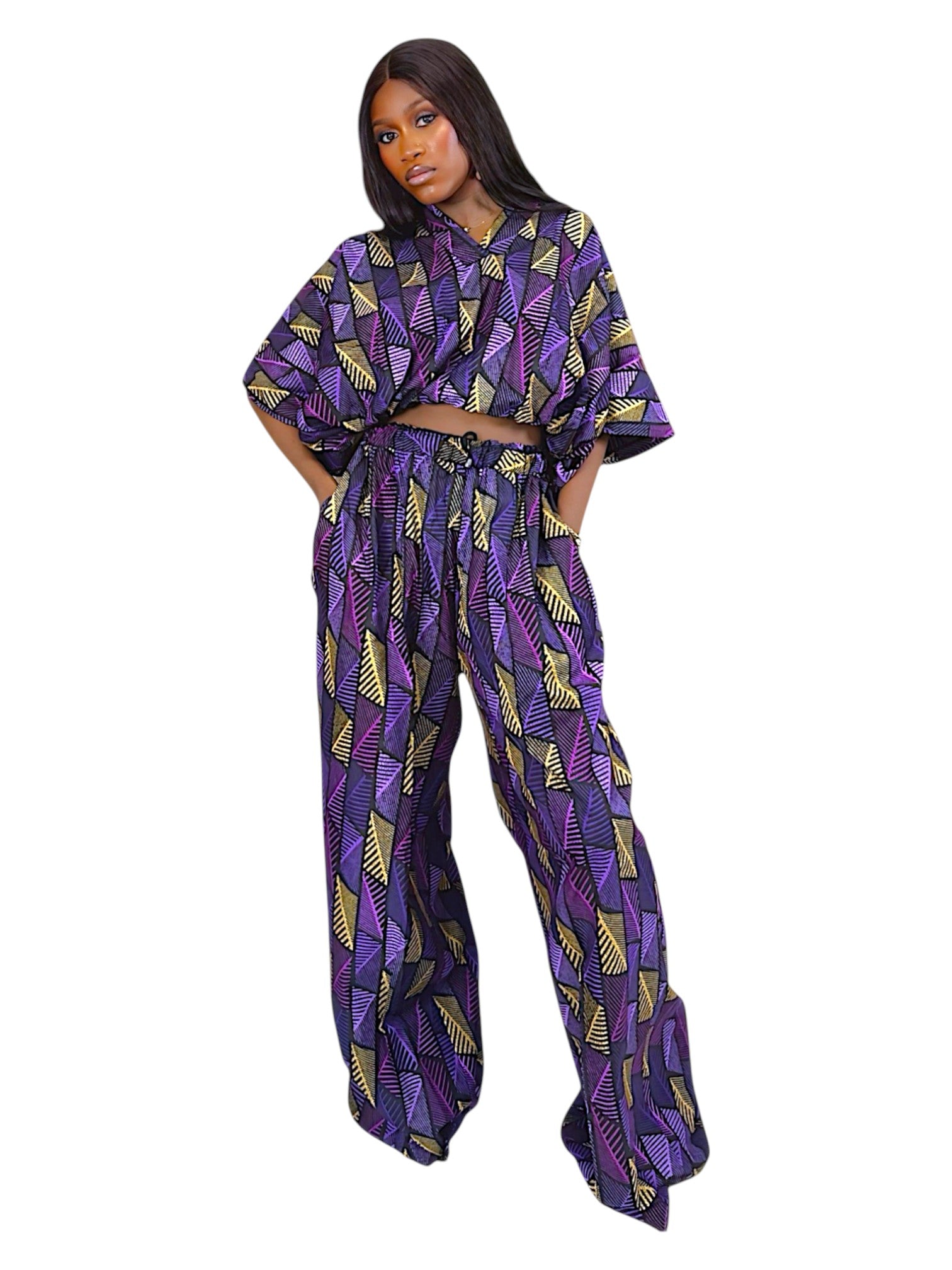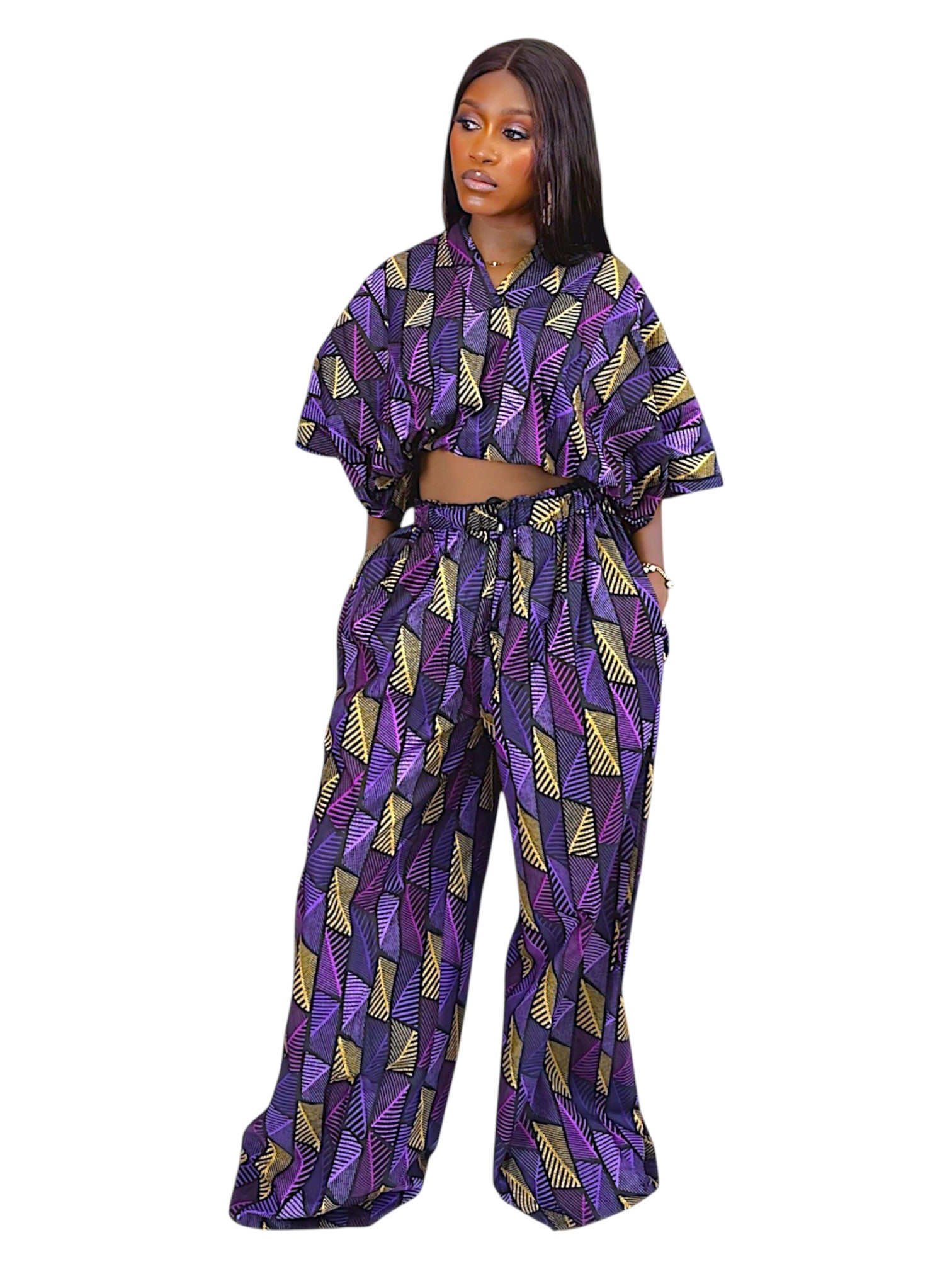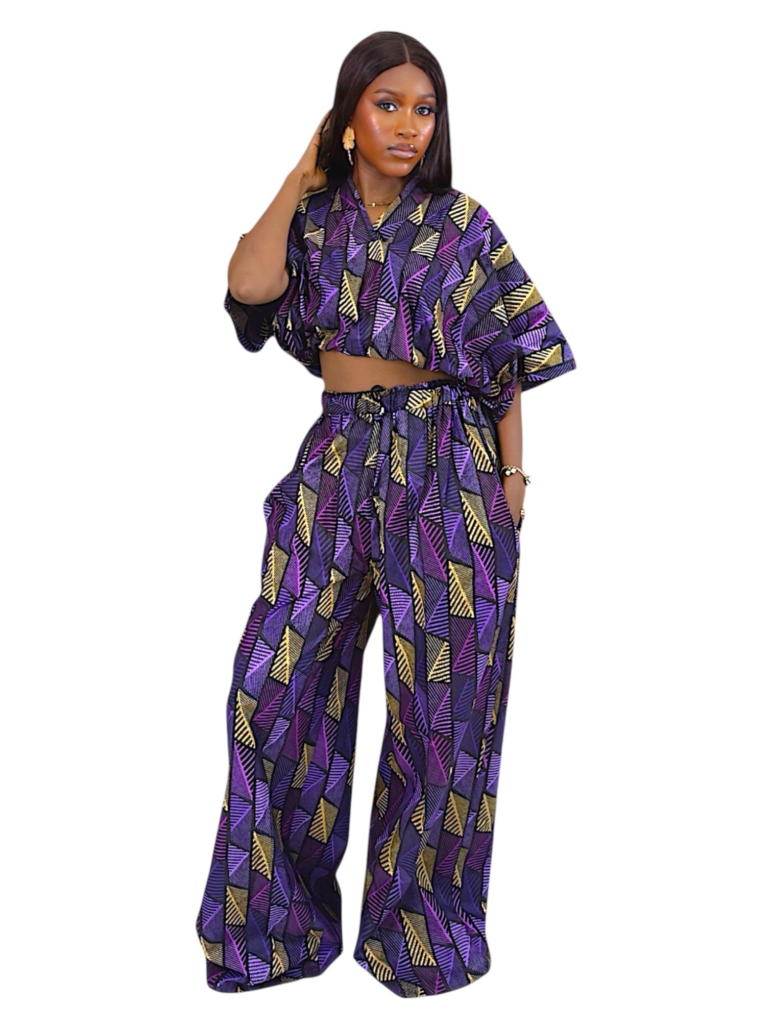 Ìfẹ́́rí Ankara Crop Top and Wide Leg Pant Set